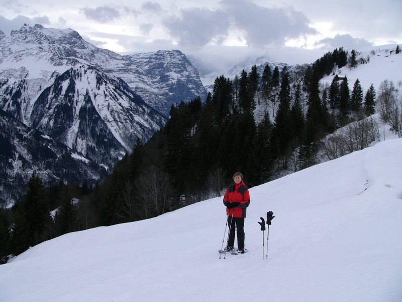 Linthal (645 M) -> Cablecar to Braunwald (1256 M) -> walking to Schwettiberg (1420 M) -> with Snowshoe to Orenplatte -> Mattwald -> Grotzenbühl (1559 M) -> Schwettiberg (1420 M) -> walking to Braunwald -> Cablecar to Linthal (645 M)