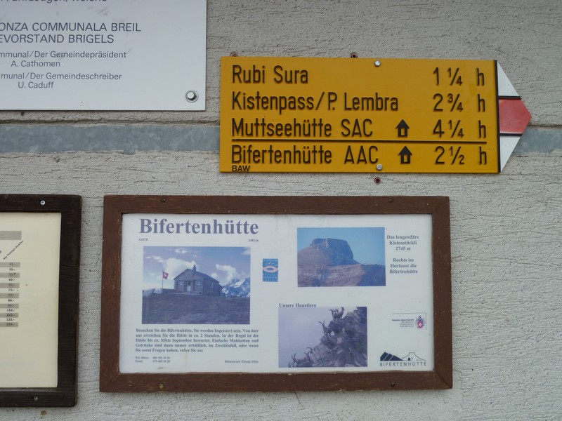 25.7.2010:Alp Quader (1910 M) -> Rubi Sura (2172 M) -> Bifertenhütte (2487 M) -> Kistenpass (2640 M) -> Kistenpasshütte (2729 M) -> Kistenpass (2640 M) -> Rubi Sura (2172 M) -> Alp Quader (1910 M)