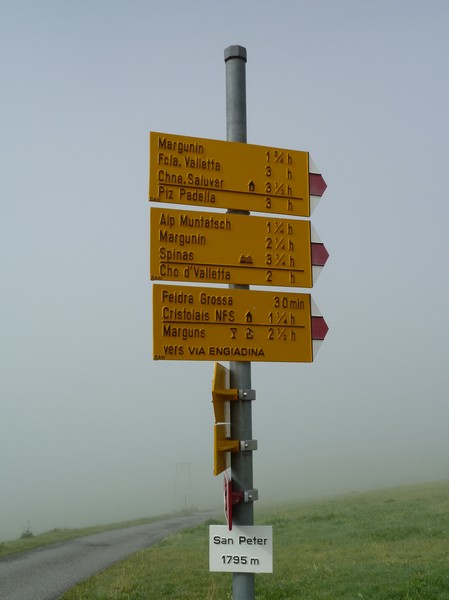 9.8.2010:St. Peter, Samedan (1795 M) -> Alp Muntatsch (2186 M) -> Margunin (2409 M) -> Piz Padella (2856 M) ->Margunin (2409 M) -> Alp Muntatsch (2186 M) -> St. Peter, Samedan (1795 M)