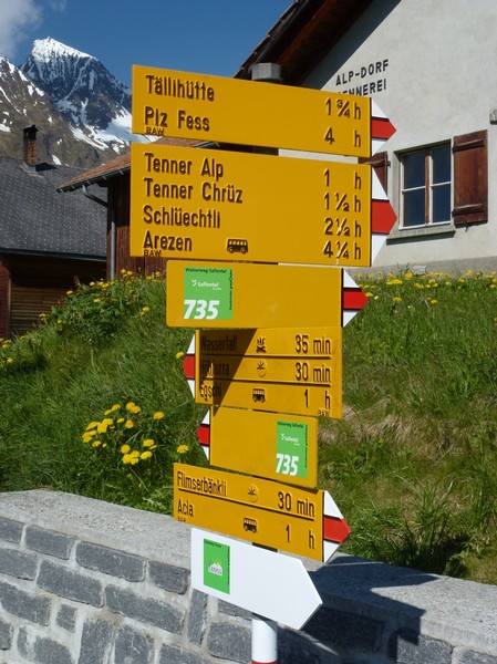 8.6.2013:Tenna (1650 M) -> Bir undera Hütta (1783 M) -> Bir obera Hütta (1865 M) -> Bleichtaboda (1938 M) -> Tenner Chrüx (2020M) -> Schlüechtli (2283 M) -> Tenner Chrüx (2020M) -> Flimser Bänkli (1680 M) ->Usser Bärg -> Tenna (1650 M)